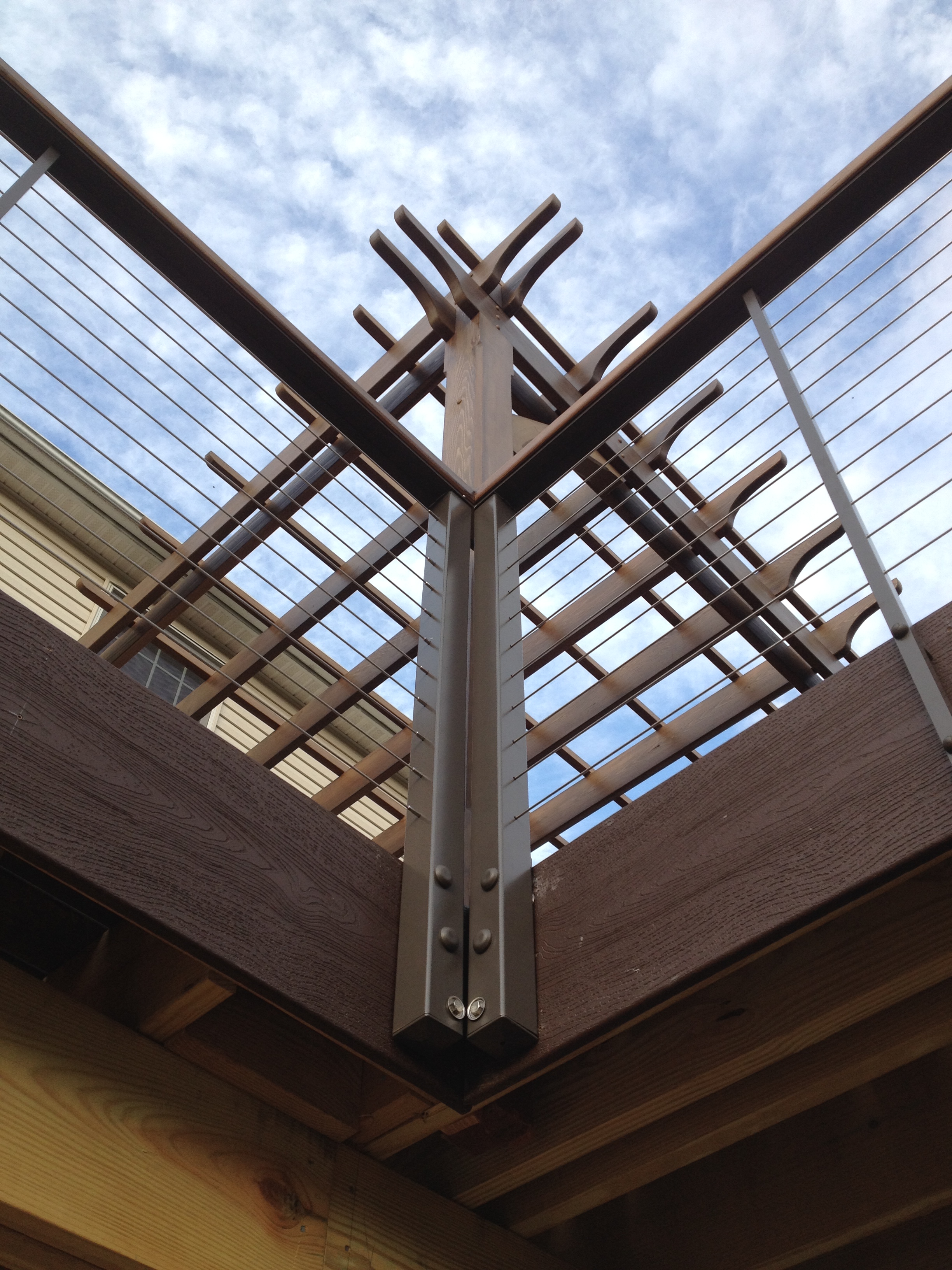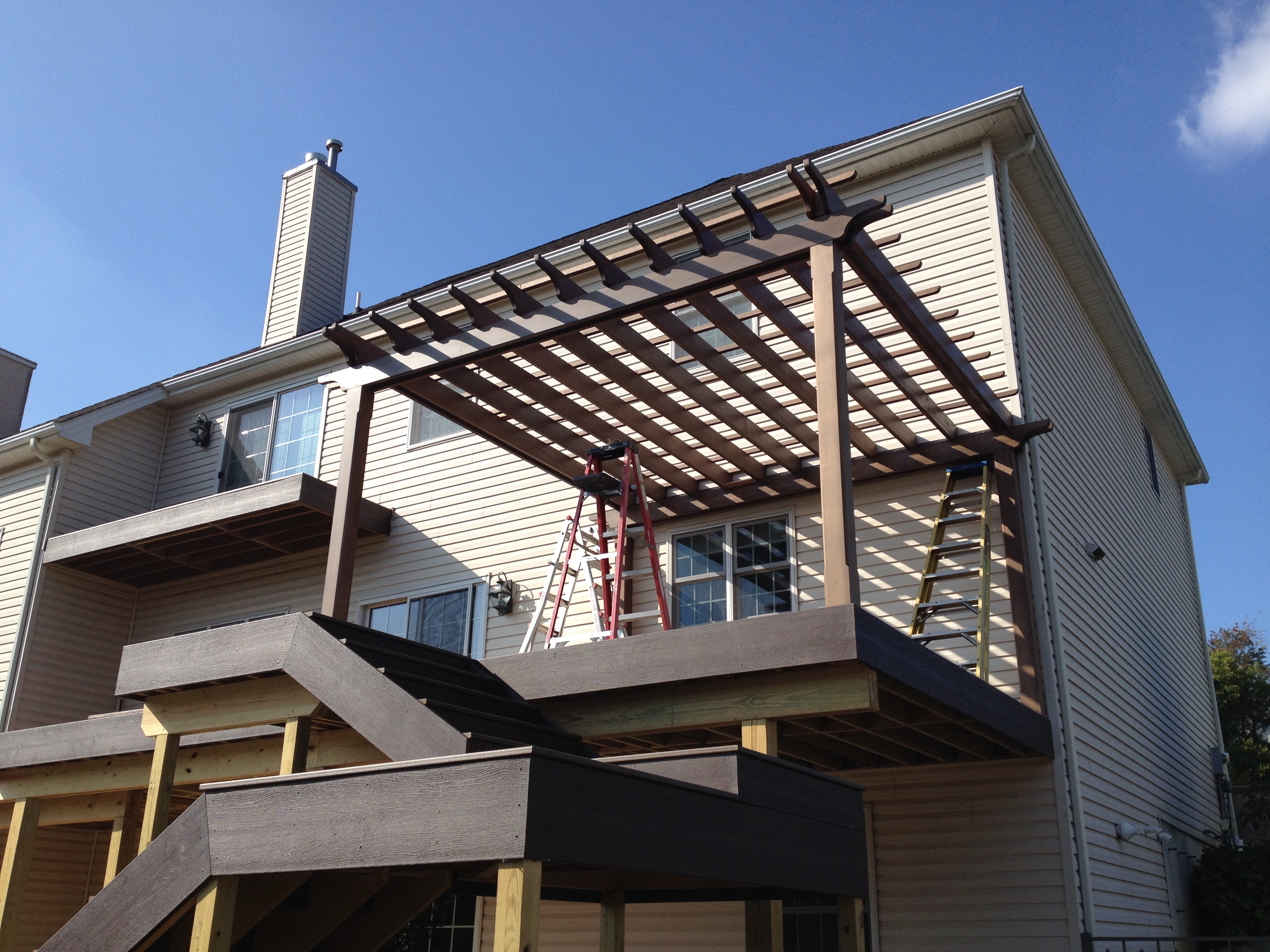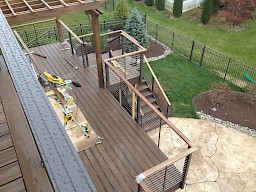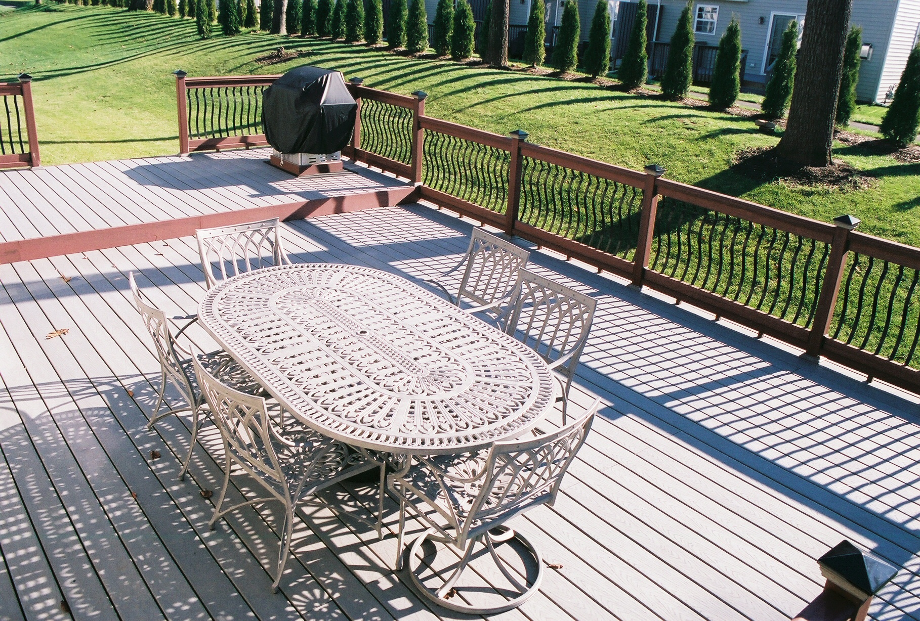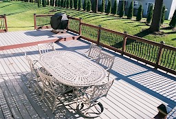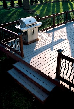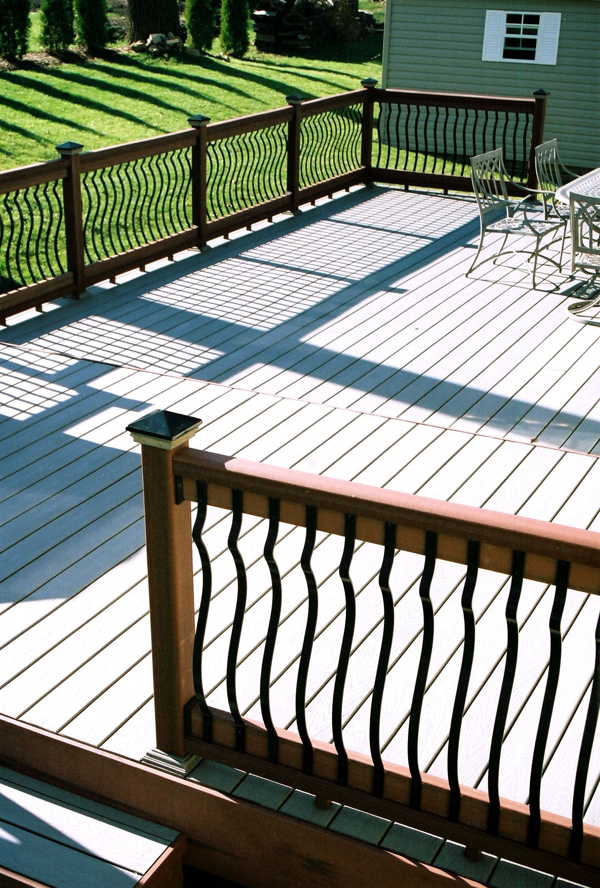 Defined as such primarily due to the materials used, these decks are constructed out of plastic composites and metals for a clean, fresh, contemporary look. Behind the good looks however, lies maintenance-free ease of ownership. No splinters to worry about for childrens' bare feet, no need to apply wood-preservative or re-stain annually, Trex comes in a multitude of colors and textures, with beautiful rail systems to match. A bit more expensive than standard pressure treated lumber, most customers consider the investment well worth it!