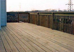 The only thing "standard" about these decks is the material (pressure-treated southern yellow pine) out of which they are built. Each deck is still exquisitely designed and constructed with careful attention to detail. Notching of posts, routered and sanded hand rails, lumber stamps sanded from exposed sides prior to spray applied wood preservative, etc.