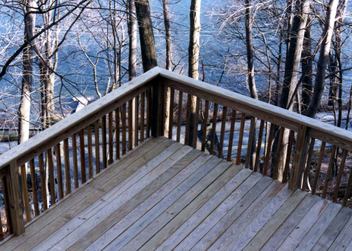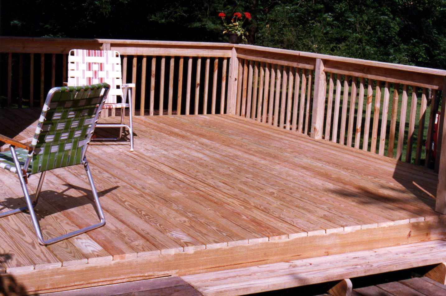 The only thing "standard" about these decks is the material (pressure-treated southern yellow pine) out of which they are built. Each deck is still exquisitely designed and constructed with careful attention to detail. Notching of posts, routered and sanded hand rails, lumber stamps sanded from exposed sides prior to spray applied wood preservative, etc.